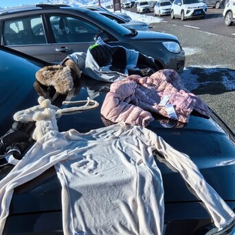 上来之后男朋友第一时间让把湿衣服脱了,穿了他的干衣服!裤子不好换,走到车上这段路我觉得腿可以冷得截肢!天呐!赛里木湖!我的梦中情湖让我体验了冬泳!